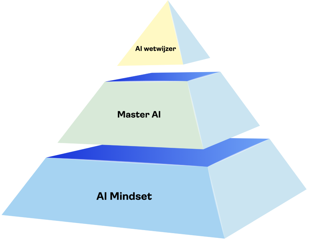 AI Wetwijzer > zodat je weet wat mag Master AI > zodat je weet wat werkt AI Mindset > zodat je team meegroeit
